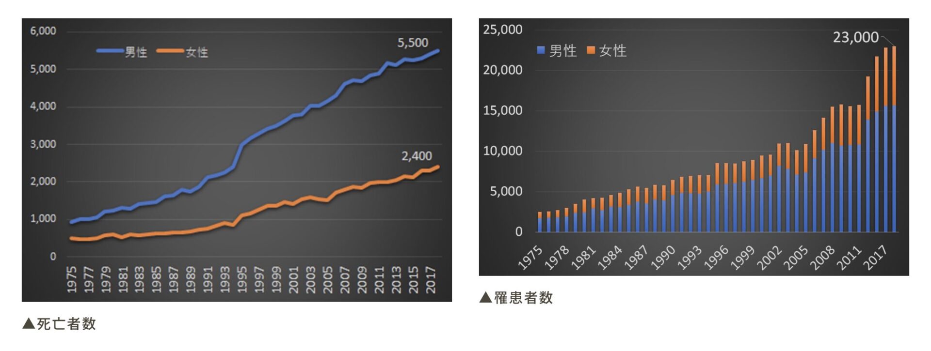 以前は希少がんとされていた「口腔がん」ですが、日本では、およそ7,000人が口腔がんになり、死亡者数も3,000人を超え、右肩上がりで増えています。